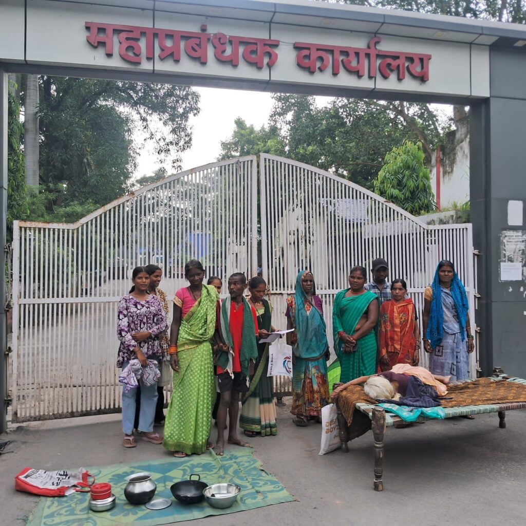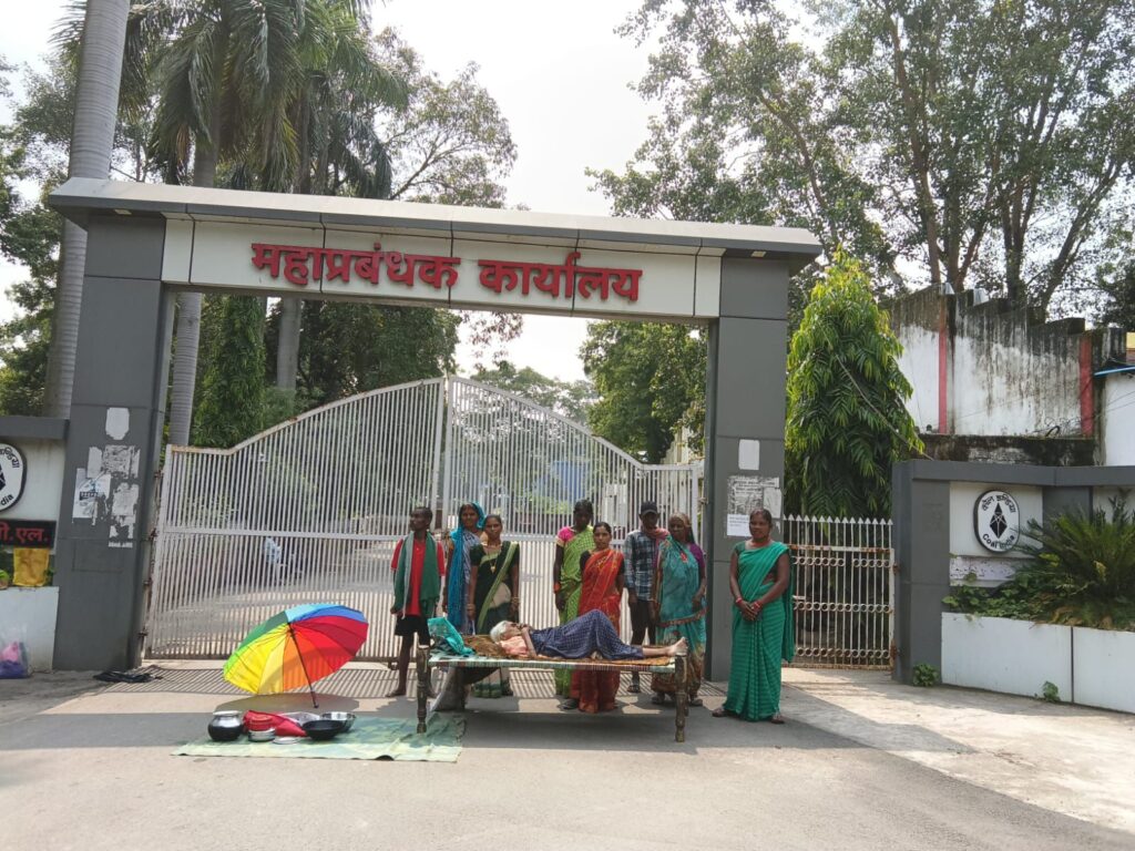 प्रदर्शनकर्ता विशेषकर गोमती केवट ने आरोप लगाया कि जब खदान के लिए उनकी जमीन अधिग्रहित की गई थी तो उनके परिवार को वैकल्पिक रोजगार दिया जाना था, परंतु आज तक किसी को नौकरी नहीं मिली। गोमती ने बताया कि उनके ससुर के नाम पर एक अन्य व्यक्ति का नौकरी में नाम दर्ज दिखा है, जबकि उनका और उस व्यक्ति का पारिवारिक कोई संबंध नहीं है। उन्होंने कहा कि पिछले बार उनकी शिकायत के बाद जांच हुई थी, अब प्रबंधन ने उसी मामले में आरोप पत्र जारी कर सख्त कार्रवाई की जानकारी दी है — जिसके बाद गोमती ने अपना प्रदर्शन स्थगित कर दिया, लेकिन अन्य भूविस्थापित 8, 9 और 10 सितंबर तक धरना जारी रखने की चेतावनी के साथ गेट पर ही डटे हुए हैं।