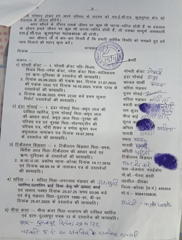 जब पीड़ित परिवार न्याय की मांग को लेकर एस.ई.सी.एल. कुसमुंडा कार्यालय में महाप्रबंधक से मिलने गए, तो वीरेन्द्र कुमार अधिकारी द्वारा उन्हें पुलिस के माध्यम से जेल भेजने की धमकी दी गई, जो आत्म-सम्मान के खिलाफ है।