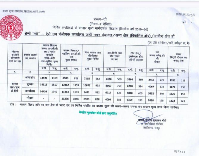 प्रभावित ग्रामों जैसे नराईबोध, भिलाईबाजार, रलिया, हरदीबाजार, खोडरी, रिसदी, पाली के लिए छत्तीसगढ़ केंद्रीय मूल्यांकन बोर्ड द्वारा जारी पुरानी और नई दरों में प्रति वर्गफुट (Sq. Ft.) के आधार पर भारी अंतर स्पष्ट रूप से देखा जा सकता है, जिससे प्रभावित परिवारों को करोड़ों रुपये का नुकसान हो रहा है।