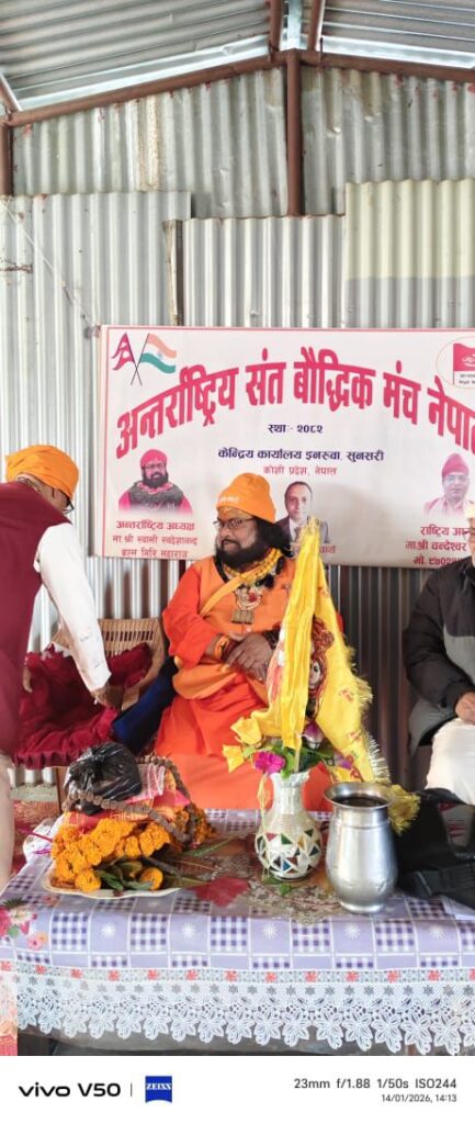 अंतर्राष्ट्रीय सन्त बौद्धिक मंच के विस्तार की दिशा में एक महत्वपूर्ण कदम उठाते हुए नेपाल के कोशी प्रदेश स्थित इटहरी में संगठन के केंद्रीय कार्यालय का विधिवत उद्घाटन किया गया। कार्यालय का उद्घाटन अंतर्राष्ट्रीय सन्त बौद्धिक मंच के अंतर्राष्ट्रीय अध्यक्ष स्वामी स्वदेशानंद ब्रह्म गिरि महाराज के कर-कमलों से संपन्न हुआ।