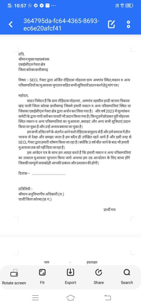 पीड़ित परिवारों ने SECL गेवरा के मुख्य महाप्रबंधक (CGM) को ज्ञापन सौंपते हुए स्पष्ट चेतावनी दी है कि यदि जल्द मुआवजा और पुनर्वास नहीं दिया गया तो वे उग्र आंदोलन के लिए बाध्य होंगे।