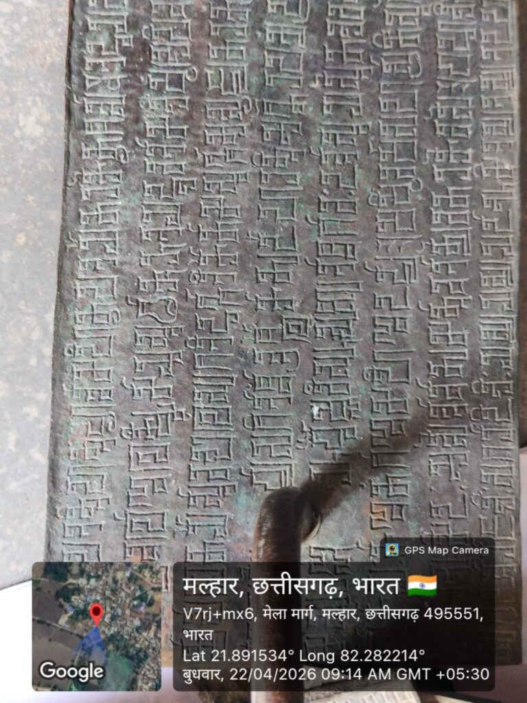 ✍️मल्हार की ऐतिहासिक धरती से एक बेहद महत्वपूर्ण और चौंकाने वाली खोज सामने आई है। ज्ञान भारतम् अभियान के तहत यहां एक लगभग 2000 वर्ष पुराना ताम्रपत्र मिला है, जो इतिहास और पुरातत्व के क्षेत्र में बड़ी उपलब्धि माना जा रहा है।